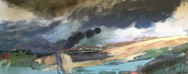 JuB37 Heath Fire by Julienne Braham, 40 x 100cm Oil on Board