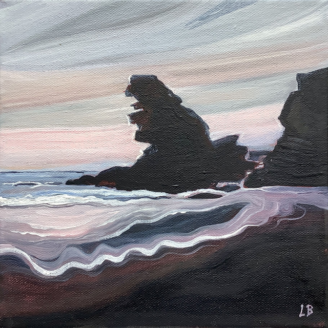 LB22 Machlud yn Llangrannog, by Lucy Burden, 20 x 20cm plus frame, Oil on Canvas