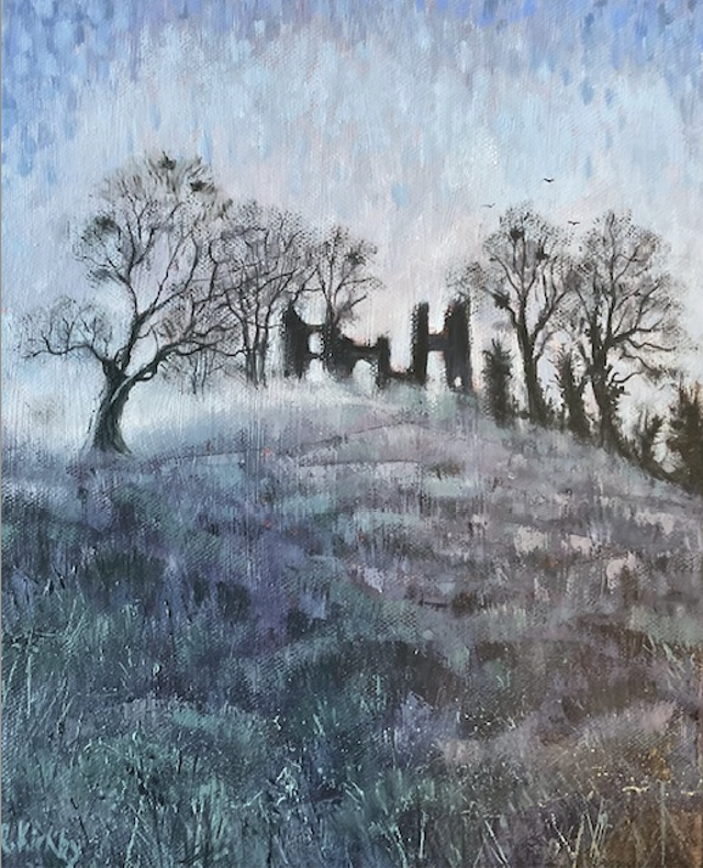 RK29 Stapleton Castle - Dawn by Ruth Kirkby, 24 x 30 cm Oil on canvas